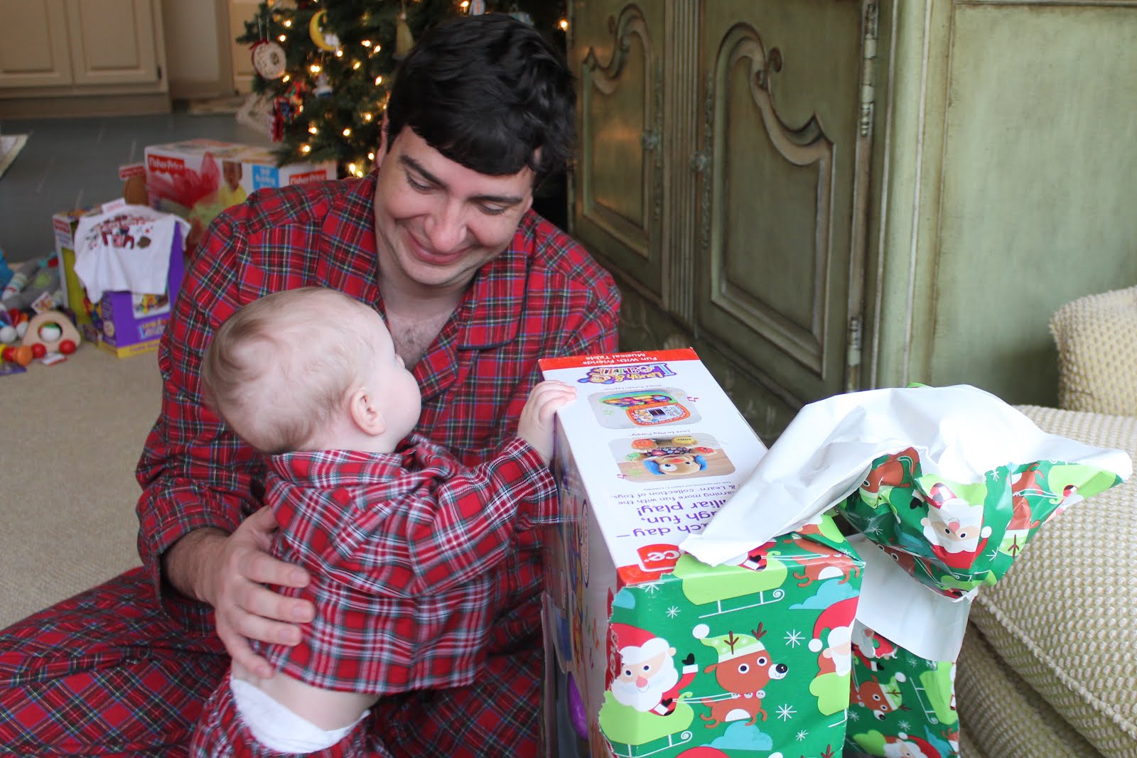 Hardy's first Christmas was an absolute delight! We started the day by seeing what Santa brought and opening gifts from CC and Papaw. Funny story about Santa...as Mr. Dane was catching the moment on video, I accidentally said, "and look at this toy we got you." Kyle shouted, "Rookie!" Guess you could say I'm new at this! Hardy enjoyed ripping the paper off the gifts, and then it would go straight to his mouth. It was fun to watch him with his new toys. You can already tell which ones are going to be his favorites. After opening presents, we went to Bull and Peggie's for lunch and more gifts! We spent the evening relaxing and enjoying time as a family. What a wonderful Christmas! It was certainly more than I could have asked for or imagined!